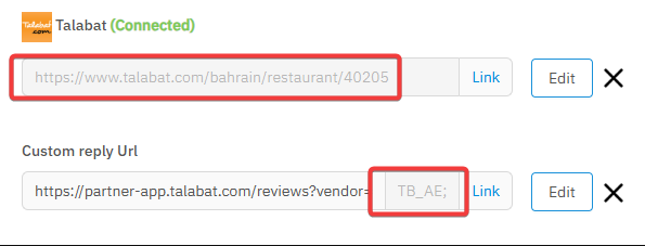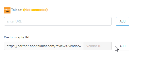 بمجرد حصولك على رابط الصفحة العامة ومعرف البائع، كل ما عليك فعله هو إدخال هذه القيم داخل إعدادات كل فرع من فروعك تحت قسم "ربط طلبات" (Talabat Integration).