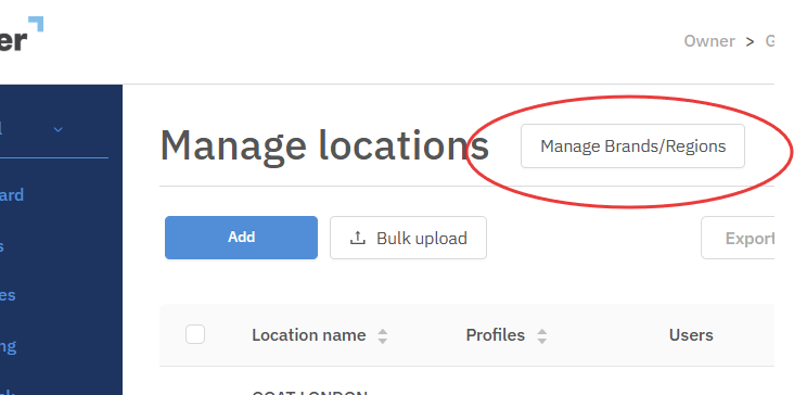 At the top of the page, next to the title, click “Manage Brands/Regions.”